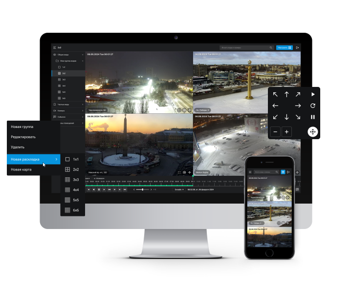 Доступ к онлайн трансляциям камер и архиву с помощью браузера, мобильного и десктоп приложения